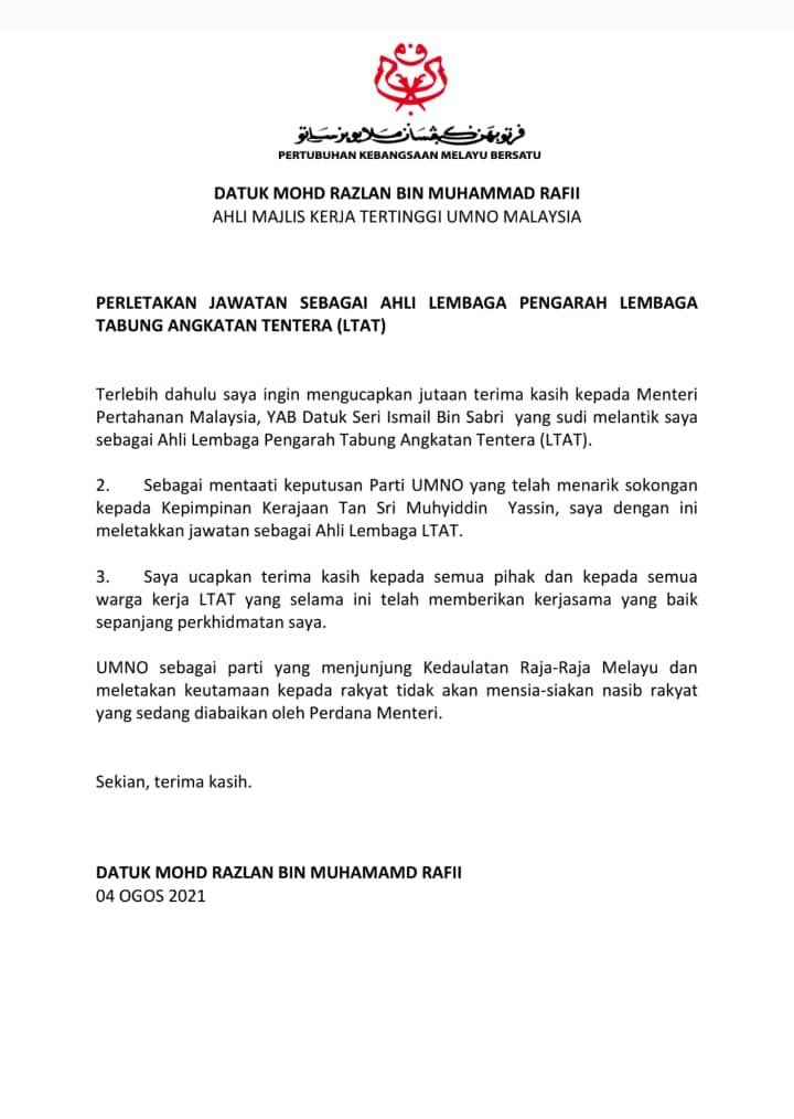 Fab Rahman On Twitter Done Deal Datuk Razlan Rafii Resigns His Position As Ltat Board Member That No One Knew He Was Part Of Last Minute Bid By Ismail Sabri Did