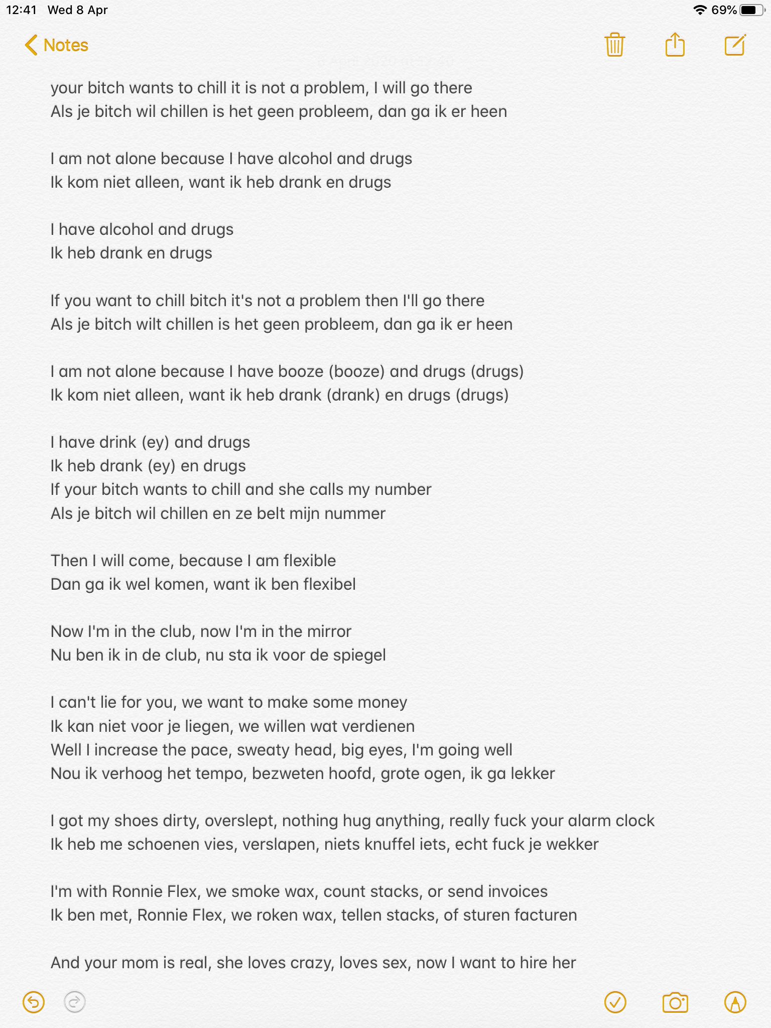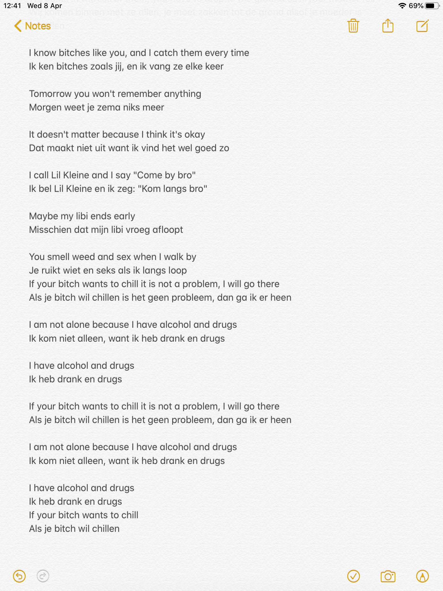 Dutch original german version if your b-tch wants to chill its not a problem ill go there i wont come alone cause i have booze and drugs i have booze and drugs if your b-tch wants to chill its not a problem ill go there i wont come alone cause i have booze booze. Als je bitch wil chillen is het geen probleem dan ga ik er heen. Posted on September 30 2020 Author admin 0 Dutch original German version If your bh wants to chill its not a problem Ill go there.